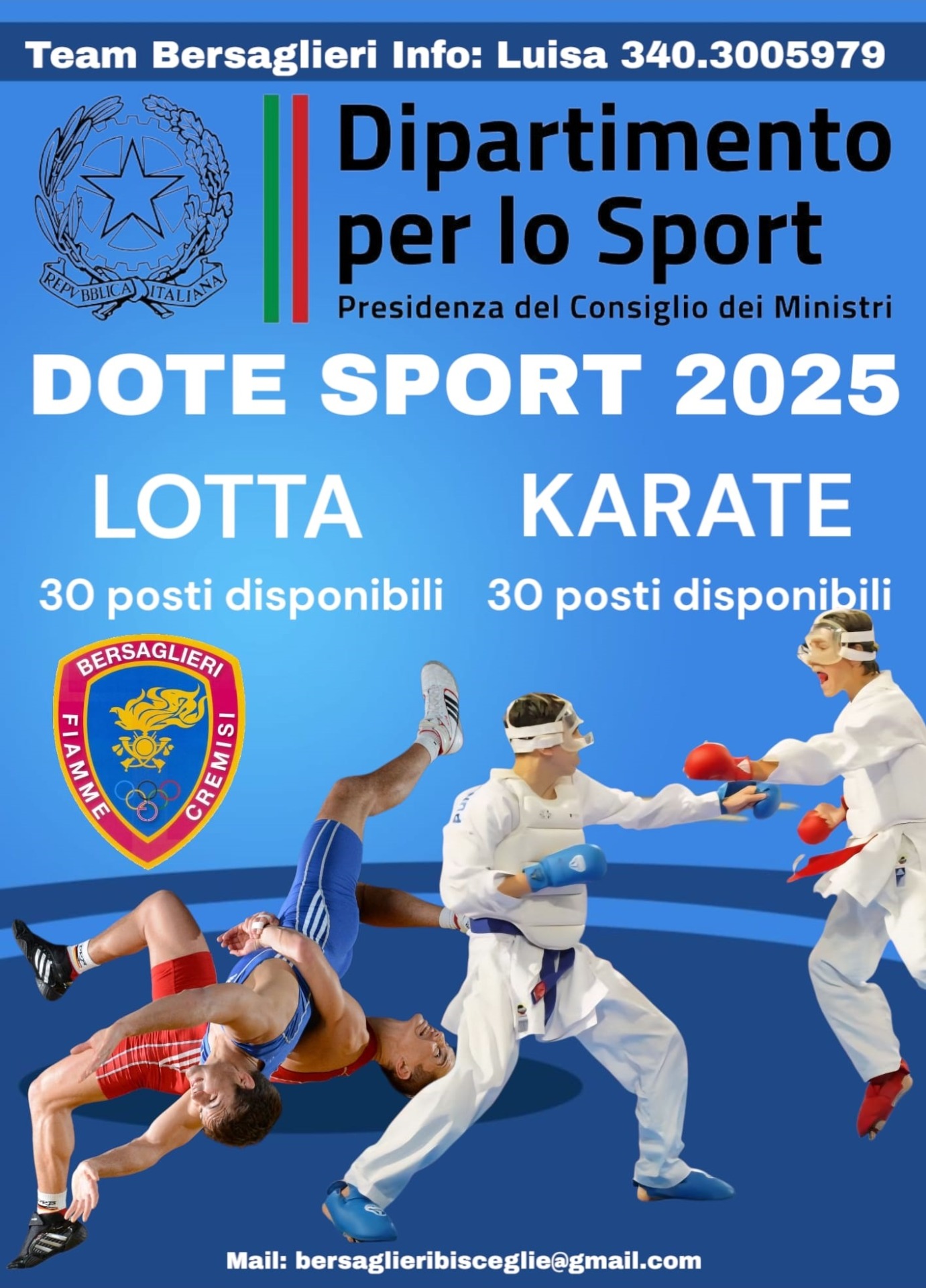 Presidenza del Consiglio dei Ministri Dipartimento per lo Sport. 30 POSTI SETTORE KARATE - 30 POSTI SETTORE LOTTA OLIMPICA.