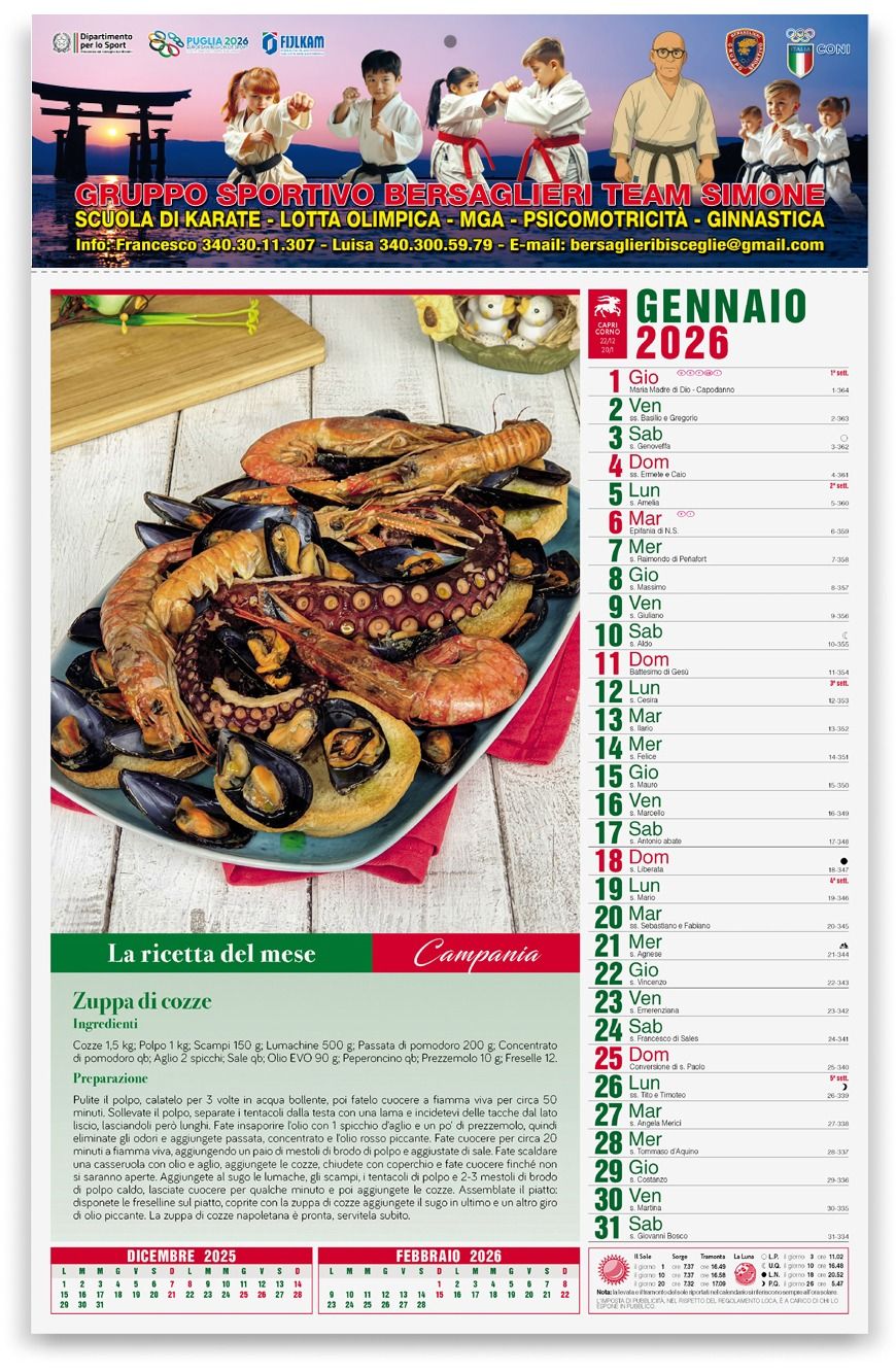 Anche per il 2026 consegneremo alle famiglie il calendario della massaia come tradizione vuole.Quest'anno abbiamo scelto la CUCINA, per deliziare i sapori Pugliesi, e dare un pò di armonia alle famiglie. Ringraziamo tutti i genitori che grazie al 5X1000 possiamo investire una parte delle risorse nei gadget natalizio. Questo è il nostro regalo di Natale. Già dalla prossima settimana potete ritirarlo presso la nostra segreteria.