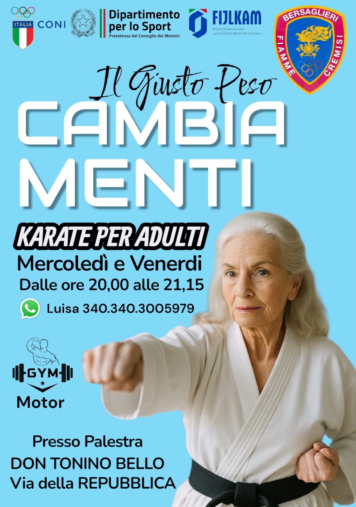 E' partito il corso per adulti di karate e Ginnastica per la salute ,vede la partecipazione di un gruppo numeroso di lavoro i risultati saranno evidenti sia FISICO che MENTALE.