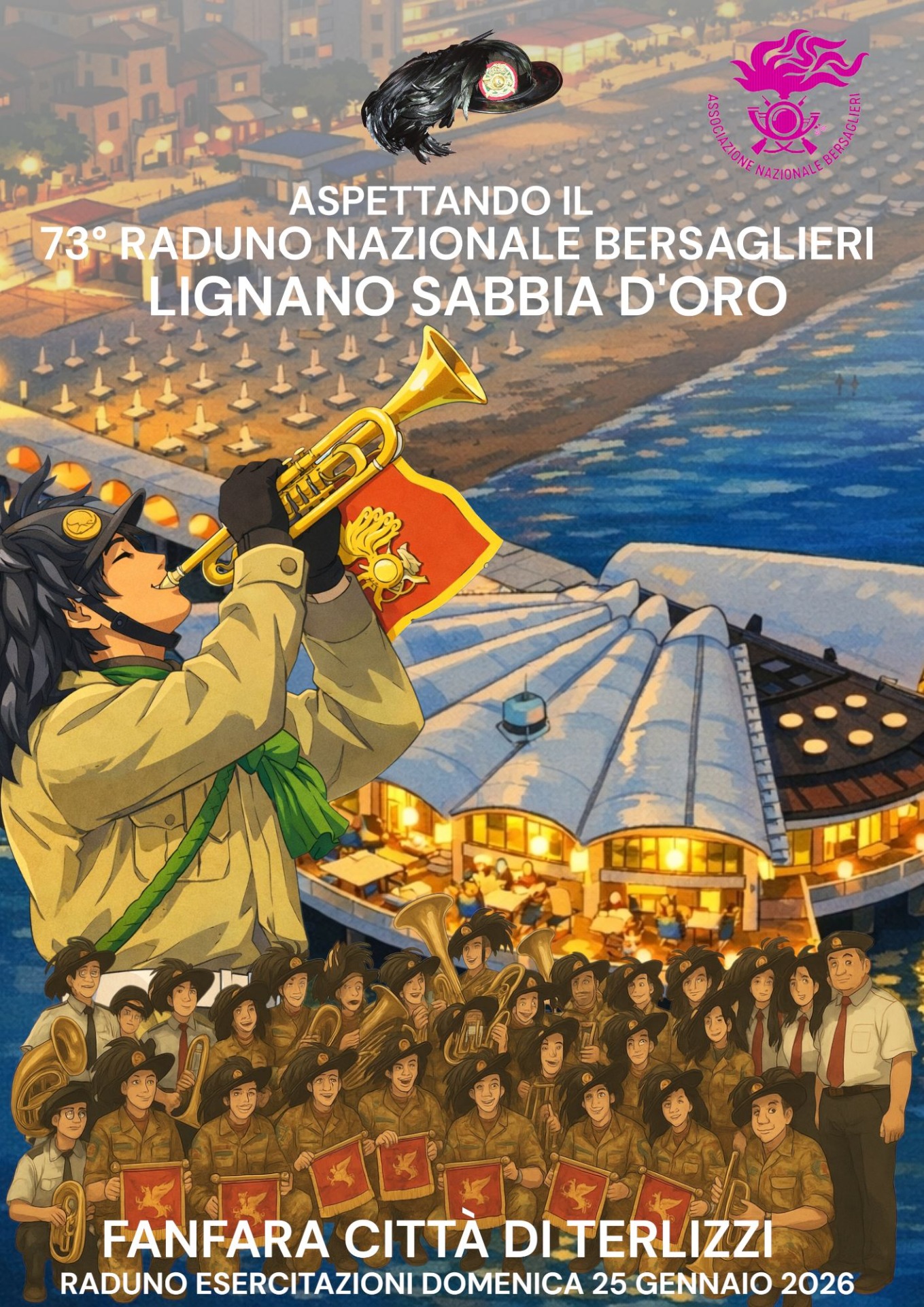 Gli ottoni della Fanfara dei Bersaglieri Città di Terlizzi DOMENICA 25 GENNAIO 2026 inizia la sua esercitazione e preparazione 2026 alle attività musicali nel Centro Olimpico Territoriale Team Bersaglieri Alessandro LA MARMORA Città di Bisceglie tempo permettendo e pranzo sociale tradizionale PIUME AL VENTO.